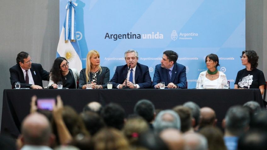 Alberto Fernandez, Nicolás Trotta; de Cultura, Tristán Bauer; y de Justicia, Marcela Losardo.Foto: Presidencia