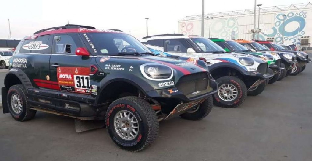 Los 4 mendocinos: Orlando Terranova y Bernardo Graue, su navegante, a bordo del MINI del X-Raid. Franco Caimi, en motos (Yamaha) y Ricardo Torlaschi (en SSV),como navegante del kazajo Artur Ardavichus.