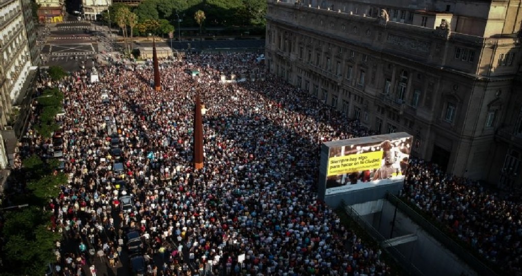 Miles de personas se reunieron en la Plaza Vaticano, frente al Teatro Colón en Buenos Aires, para conmemorar un nuevo aniversario de la muerte del fiscal Alberto Nisman.