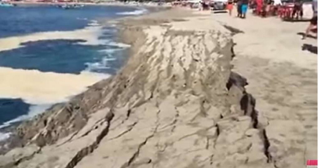 Parte de una playa se hundió y desapareció entre las agua del mar