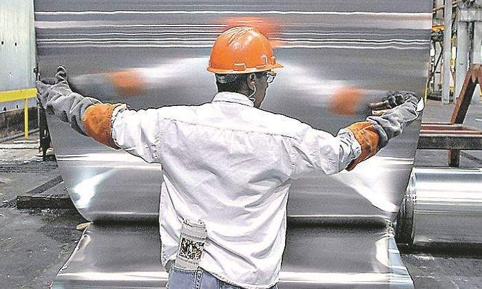 Hombre trabaja en fábrica de láminas de alumnio.España.Foto:Crédito