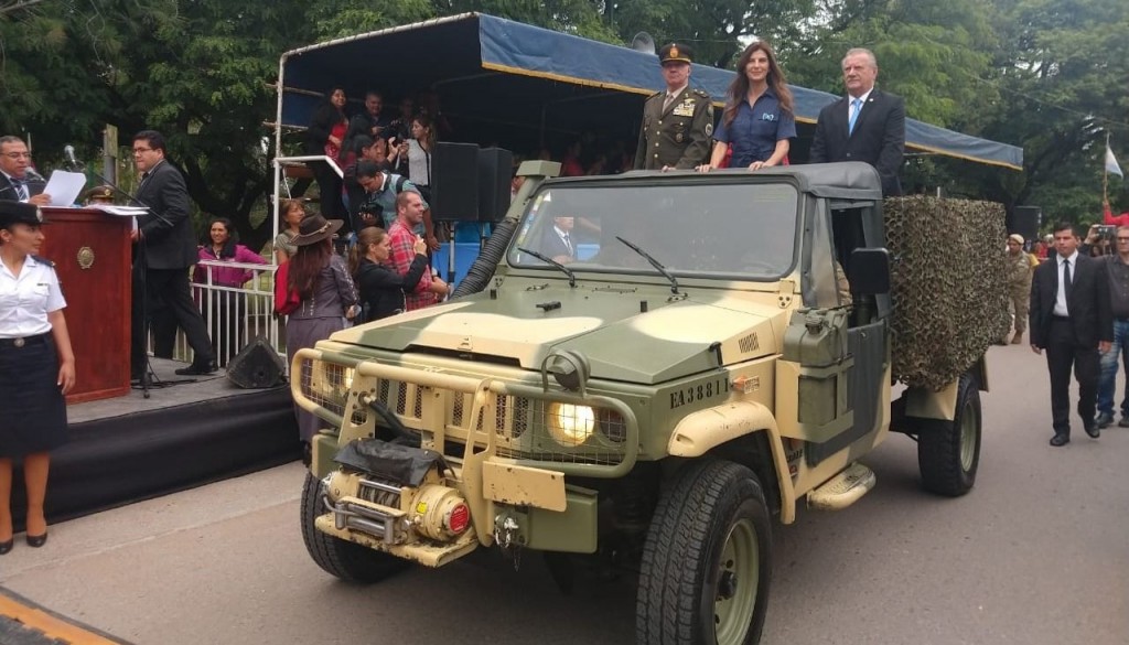 Vicegobernador Antonio Marocco,la intendente capitalina Bettina Romero y el comandante de la V Brigada de Montaña del Ejército, coronel Mariano Castelli.