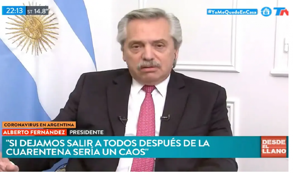 El presidente Alberto Fernández dio una entrevista,Desde el llano en el canal TN por medio de videoconferencia donde indicó que como faltan 6 días para que concluya la cuarentena. El jefe de Estado adelantó que el 13 de abril no volverán las clases.