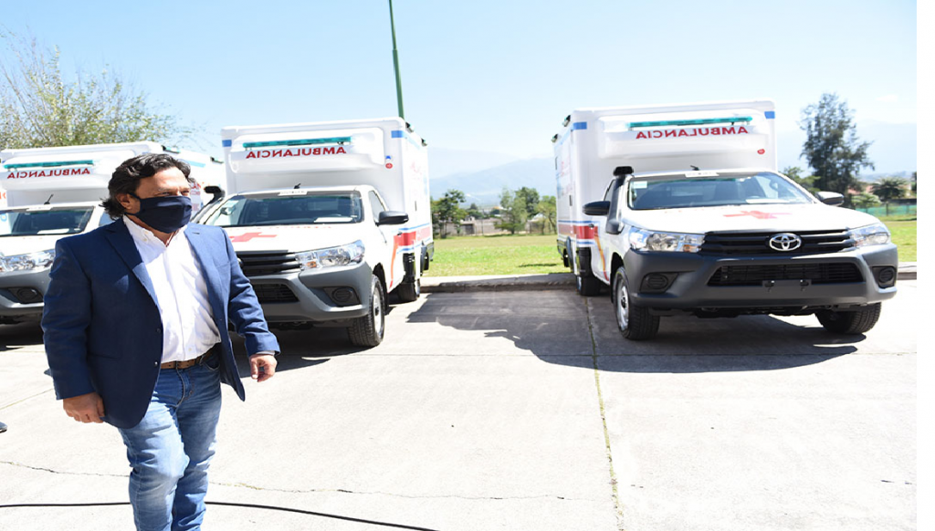 Cabe destacar que en cuatro meses de gestión, el Ejecutivo completó la entrega de un total de 23 ambulancias: 18 de mediana complejidad y 2 de alta, aportadas por la Provincia, 2 adquiridas por intendentes y 1 donada por la empresa Toyota, que fueron distribuidas entre lugares como: El Carril, General Güemes, Campo Quijano, Seclantás, Tartagal, Apolinario Saravia, La Unión, Embarcación, Pichanal y Cafayate, Los Blancos, Metán, Rosario de la Frontera, Alto La Sierra y Coronel Juan Solá.