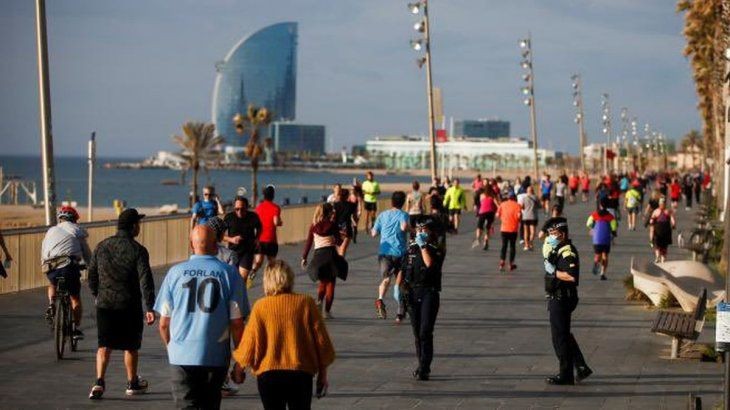 Las normas fijadas, sin embargo, no impidieron que muchísimas personas salieran al mismo tiempo y se dirigieran al mismo lugar, como es el paseo marítimo de Barcelona o los alrededores de los parques de Madrid, que permanecen cerrados, o zonas de playas en el País Vasco o Asturias.