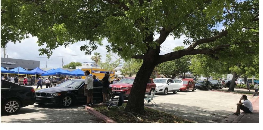 En Coconut Grove, un arbolado y tranquilo barrio de Miami, hay otro punto de reparto de alimentos.