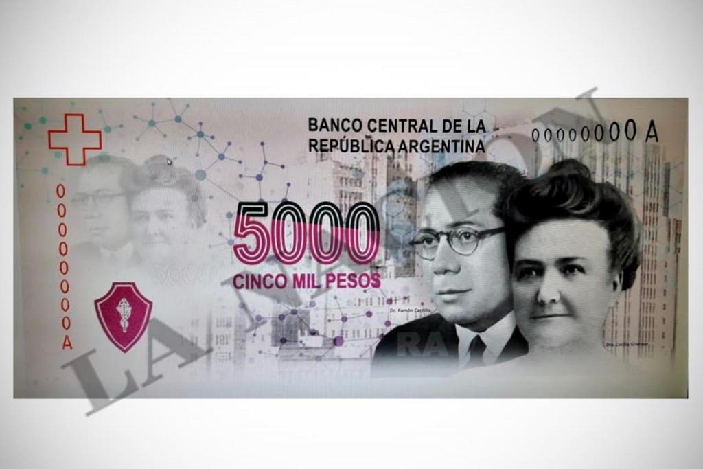 La nota del Banco Central también establecía las características del nuevo billete sanitarista, fundacional y peronista. Tendrá en el frente las imágenes de Ramón Carrillo, el primer ministro de Salud de Juan Perón, acompañado por Cecilia Grierson, la primera médica argentina. En el reverso se recorta la figura del Instituto Malbrán. Se hicieron varias muestras. LA NACION accedió a una de las primeras (no la definitiva).