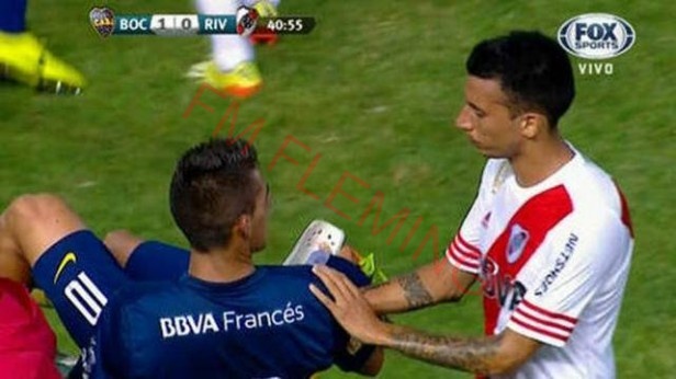 Vangioni también había lesionado en noviembre último a Juan Manuel Martínez, en el Superclásico por las semifinales Copa Sudamericana, cuando por una dura falta en el tobillo lo sacó de la cancha y el "Burrito" recién estaría regresando a la actividad el miércoles en el partido frente a Vélez Sarsfield, por un lugar en la fase de grupos de la Copa Libertadores de América.