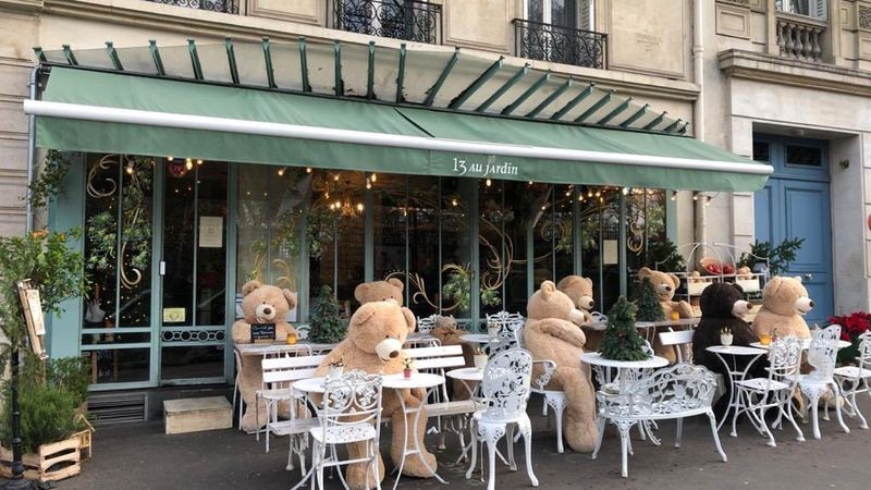 Una “invasión” de osos de peluches copó la ciudad de París. Novedoso método para mantener distancia entre las personas en bares y restaurantes.