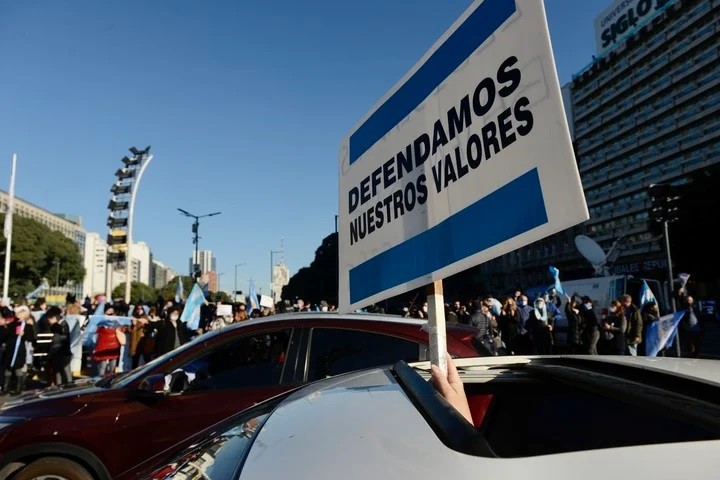 "Marchamos por la libertad, la justicia y por el bienestar de los argentinos. Por los comerciantes que se están fundiendo mientras el presidente se empeña en una cuarentena insostenible", fue el mensaje que promovió la agrupación CampoMasCiudad para convocar a la protesta.