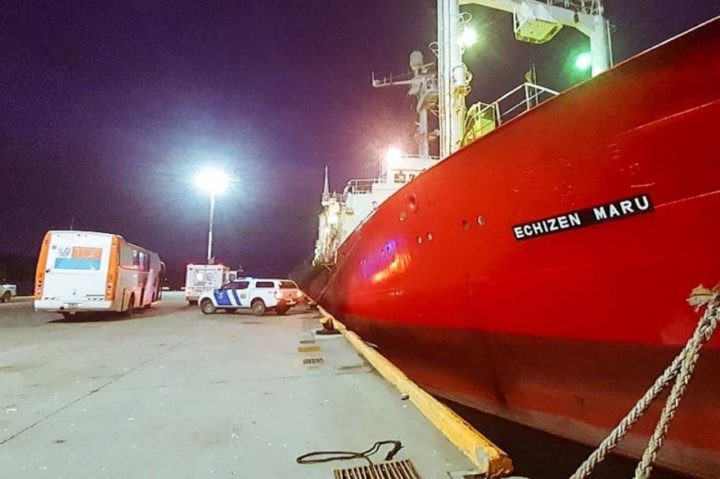 El Ministerio de Salud de Tierra del Fuego reveló que 57 de los 61 tripulantes del buque pesquero “Echizen Maru” dieron positivo por Coronavirus y permanecen aislados en el propio buque, en el Puerto de Ushuaia.