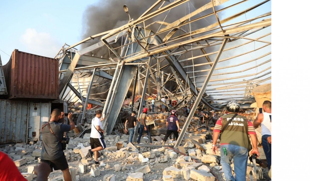 La fuente de la explosión fue un gran incendio en un almacén de petardos cerca del puerto de Beirut, informó la estatal Agencia Nacional de Noticias.