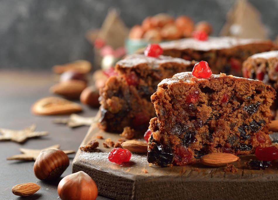 Se deben separar 350 gramos de harina, 200 gramos de azúcar morena, 200 gramos de manteca, 150 gramos de pasas rubias, 150 gramos de pasas negras, 200 gramos de ciruelas, 200 gramos de nueces y almendras, una cucharada de coñac y una de jengibre, cuatro huevos, una cucharada de canela y ralladura de limón.