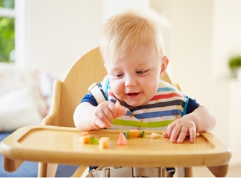 En el momento en que un niño es capaz de hacer esto ya está preparado para comenzar a comer sólidos, pero ¡ojo!, debe hacerlo él solito, es decir, debemos sentarlo en la mesa en una trona o en nuestros brazos y dejar que sea él el que alargue la mano para agarrar un trozo de patata, plátano, pera, pan, para llevárselo a la boca.
