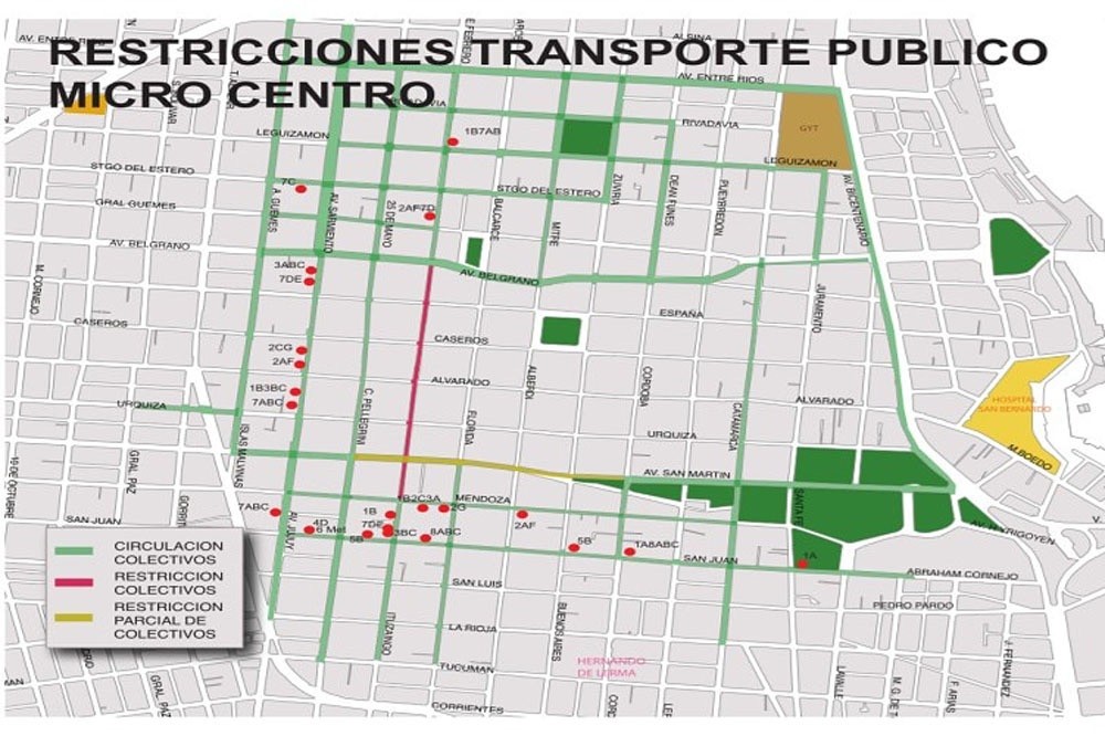 Los cambios en el circuito se establecieron trasladando las paradas que estaban ubicadas en avenida San Martín, de Córdoba a Pellegrini, a calle San Juan; y las de calle Ituzaingó, que estaban ubicadas desde avenida Belgrano a Mendoza, a avenida Sarmiento. (Vías paralelas con idéntico sentido).