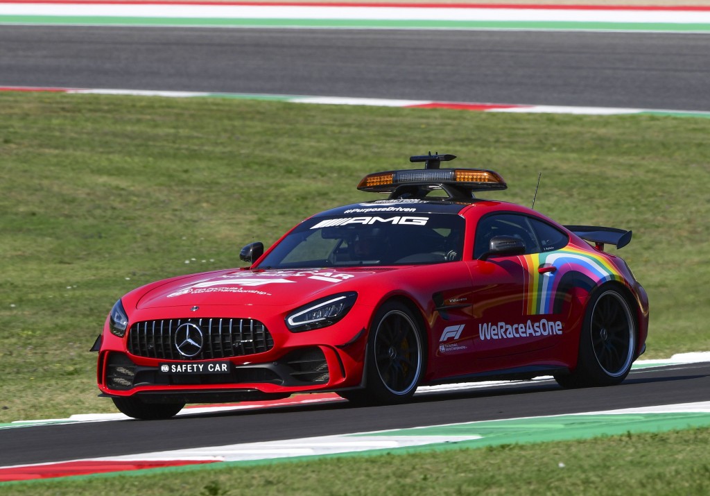Se suspende temporalmente el GP Toscana de F1 para poder retirar con seguridad los trozos del accidente múltiple generado por el coche de seguridad