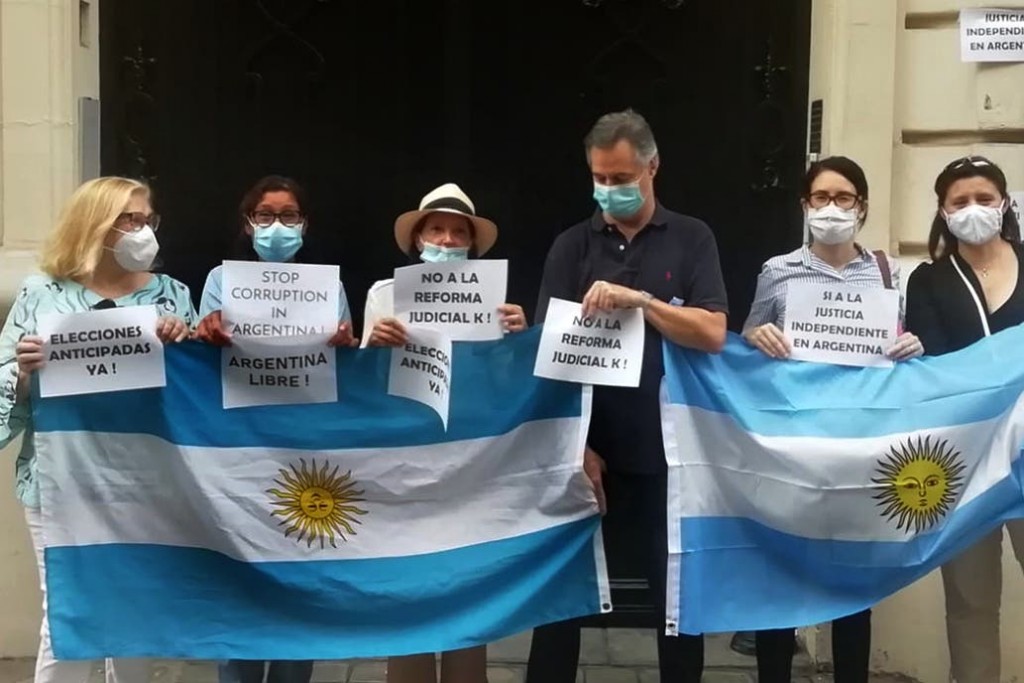Bajo la consigna #19S, en las redes sociales se llamó a protestar desde las 16, respetando las medidas de distanciamiento por la pandemia del coronavirus Covid-19. El principal disparador de esta protesta es el desplazamiento de tres magistrados que investigaban a Cristina Kirchner y que fue aprobado por el oficialismo en el Senado esta semana.
