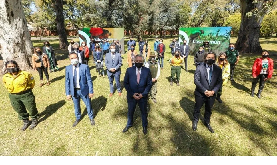 En el marco del acto, que contó con la participación de otros miembros del Gabinete y referentes de organizaciones defensoras del medio ambiente, Alberto Fernández destacó el trabajo realizado por el ministro Cabandié para poner al tema en la agenda nacional y asumió como jefe de Estado el compromiso de ponerse "al frente del cuidado del medio ambiente".