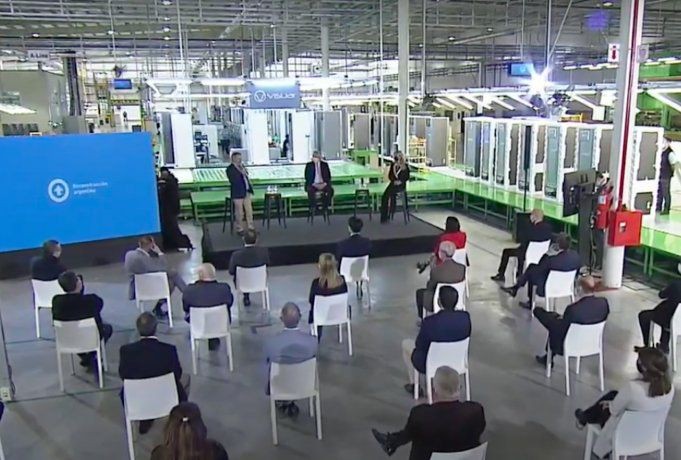 El presidente Alberto Fernández anuncia líneas de financiamiento para empresas y para la compra de electrodomésticos, durante un acto en el Complejo Industrial Visuar, en el municipio bonaerense de Cañuelas