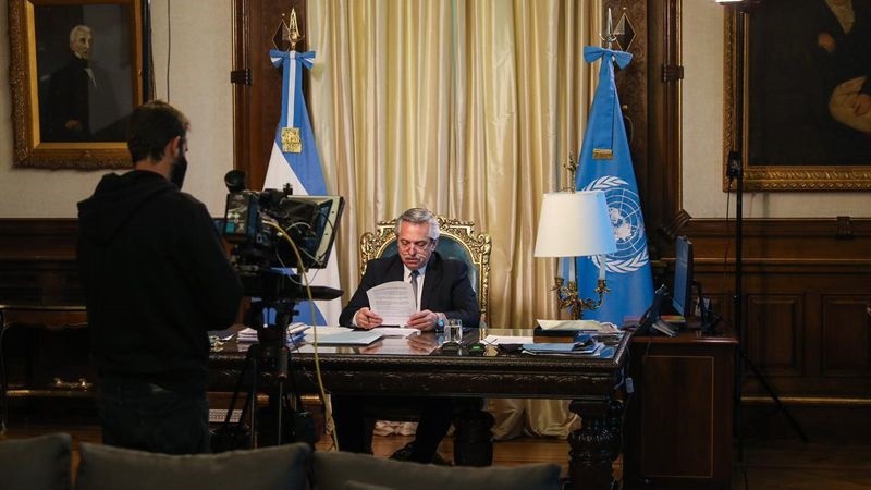 Fernández afirmó que “no es tiempo de globalizar la indiferencia sino de globalizar la solidaridad en múltiples dimensiones”, en una intervención atípica marcada por el contexto del Covid-19 y la intervención de los mandatarios a través de videos grabados y no de forma presencial.