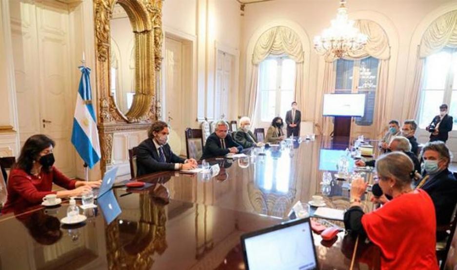 El presidente Alberto Fernández se reunió esta tarde en la Casa Rosada con el grupo de expertos médicos e infectólogos que asesoran al Gobierno nacional sobre la pandemia de coronavirus, con el fin de analizar la evolución de la enfermedad para decidir las futuras acciones.