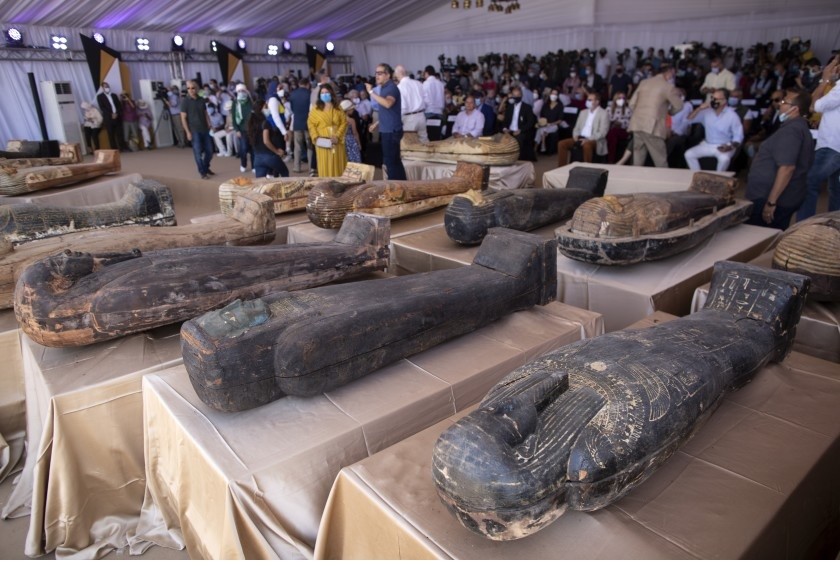 Se descubrió que al menos 59 sarcófagos sellados, la mayoría con momias dentro, fueron sepultados en tres pozos hace más de 2.600 años, dijo el funcionario Khalid el-Anany.