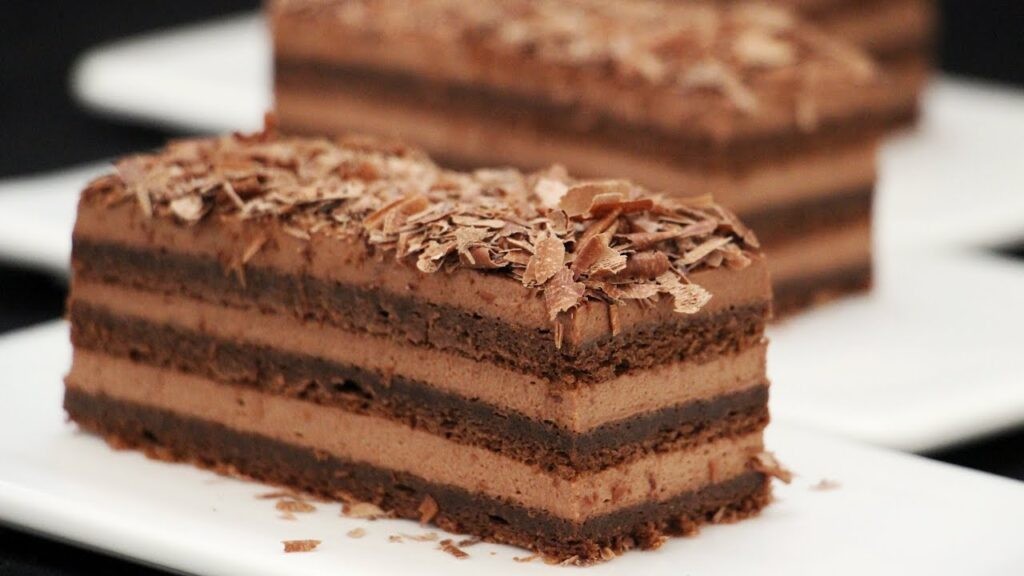 Llevar a la heladera 2hrs. 10- Cortar los 4 lados de la torta muy parejos. Cortar la torta en 6 porciones iguales. Rallar chocolate y decorarla por arriba con él.