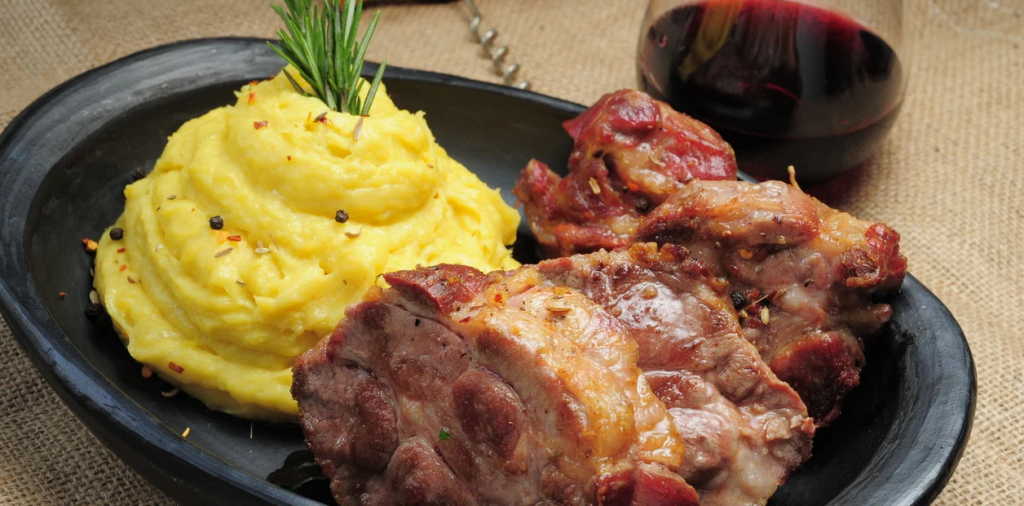 Retirar la bondiola, dejar reposar 10 minutos y servirla con el puré.