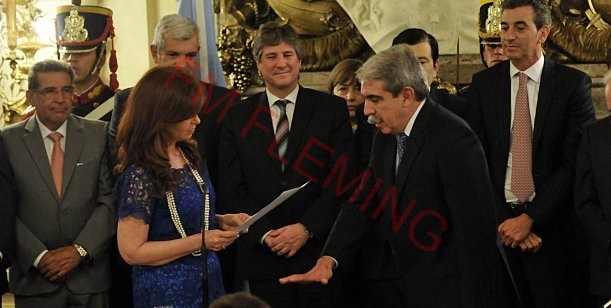 La presidente Cristina Fernández tomó juramento hoy a Aníbal Fernández como nuevo jefe de Gabinete de Ministros, en reemplazo de Jorge Capitanich, en un acto realizado en el Salón Blanco de la Casa Rosada.
