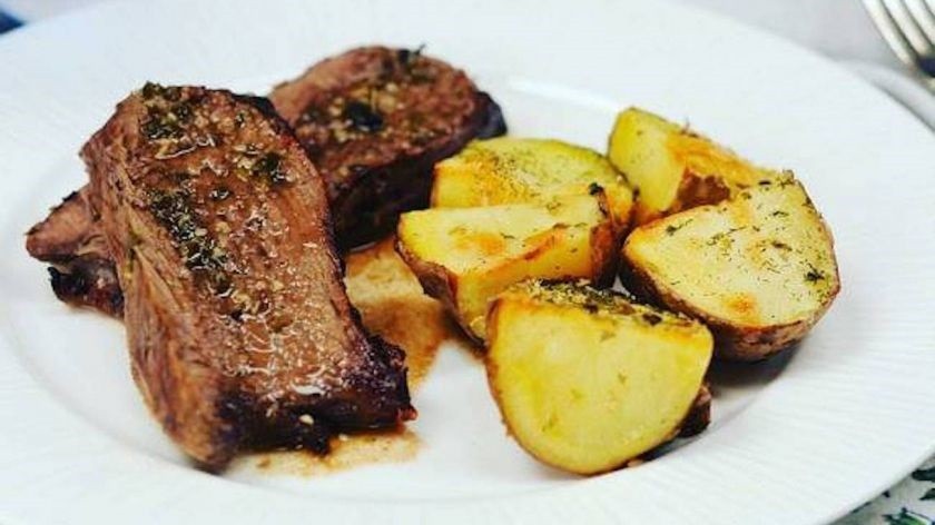 Churrasco de carne vacuna con papas