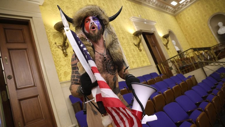 Q-Shaman fue captado el miércoles en varias escenas de los incidentes en Washington, DC. El diario Arizona Republic observó sus movimientos durante los disturbios y advirtió que, luego de ingresar al Capitolio con otros manifestantes, en un momento llegó hasta el estrado del Senado y posó para una foto sosteniendo con su mano izquierda una lanza de la que colgaba una bandera de los Estados Unidos.