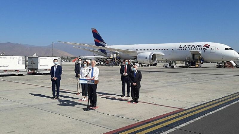 ”Avión con casi 2 millones de vacunas Sinovac ¡Aterriza en Chile!”, informó hoy el gobierno de Chile a través de su cuenta oficial de Twitter, adjuntando el video de una transmisión en vivo con la llegada del cargamento al aeropuerto de Santiago.