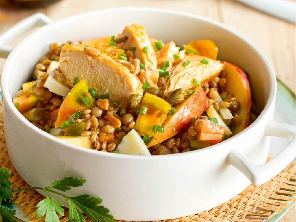 La lenteja con verduras y pollo a la plancha en un rico y equilibrado plato único que se lleva a la perfección con un dìa de calor.