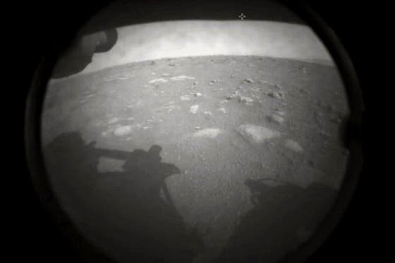 Apenas unos minutos después de aterrizar en Marte, el rover Perseverance de la NASA envió esta imagen a la Tierra. Es la primera de muchas que enviará el rover mientras está en su misión en el planeta.