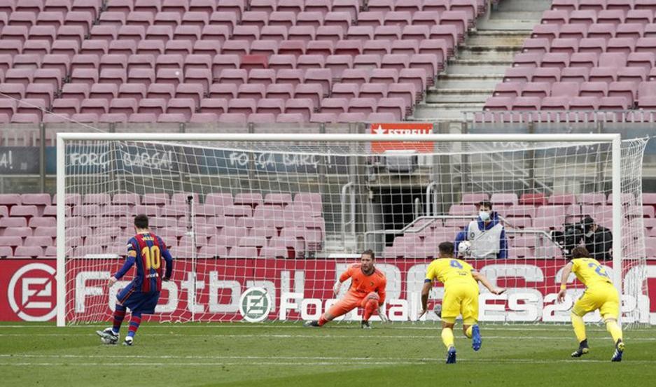 Cerca de la media hora de partido, el capitán azulgrana protagonizó la primera ocasión real de peligro para el Barcelona con un tiro de zurda de media distancia que alcanzó a despejar Ledesma. Posteriormente, una recuperación de Pedri en el área derivó en un penal a favor para los locales que La Pulga se encargó de cambiar por gol para abrir el marcador.