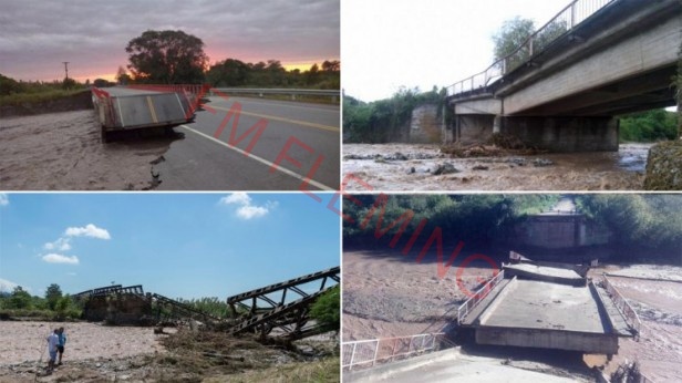 Las constantes lluvias incrementaron los caudales de los principales ríos de la provincia y ya son nueve los puentes que colapsaron debido a la presión ejercida por el agua.