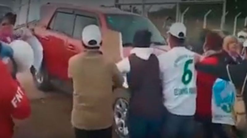 Al notar la presencia del mandatario, manifestantes y pobladores se acercaron a él pronunciando fuertes insultos como “pedófilo” y “violador”, en referencia a unas denuncias por supuesta trata y tráfico de personas en contra del ex mandatario que finalmente no prosperaron en la Justicia.
