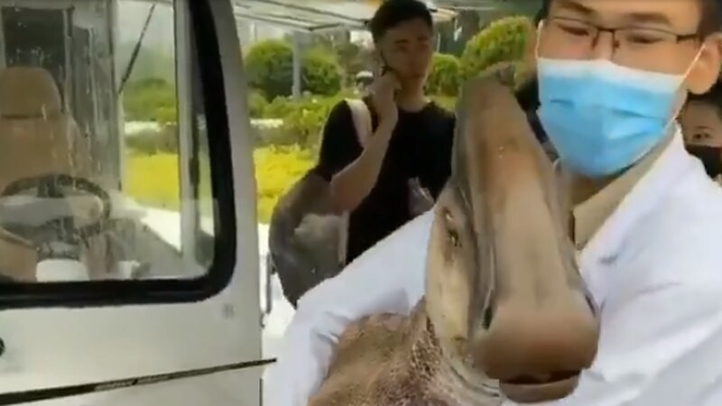 EL VIDEO EN EL QUE UN SUPUESTO CIENTÍFICO CHINO SOSTIENE A UN DINOSAURIO CLONADO.