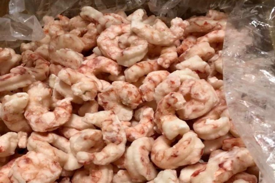 El cargamento está compuesto por 1231 cajas de cola de langostino congelado, 14 de langostino entero congelado y 84 de langostino pelado.