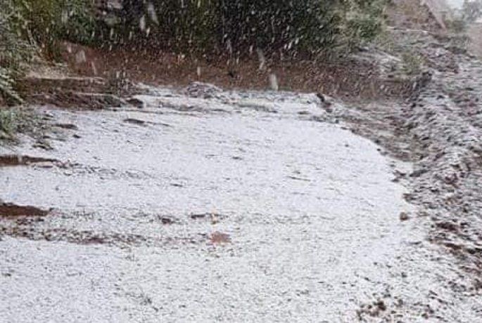 En horas de la tarde el paisaje se vistió de blanco en la zona de San Bernardo, Guandacol, Villa Unión y zonas aledañas, de la provincia de La Rioja.
