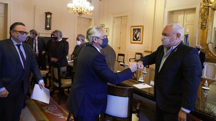 El encuentro se inició cerca de las 13 en Casa Rosada, donde el el jefe de Estado estaba acompañado por los ministros Kulfas, y Basterra; y las secretarias de Comercio Interior, Paula Español, de Legal y Técnica, Vilma Ibarra y la vicejefa de Gabinete, Cecilia Todesca.