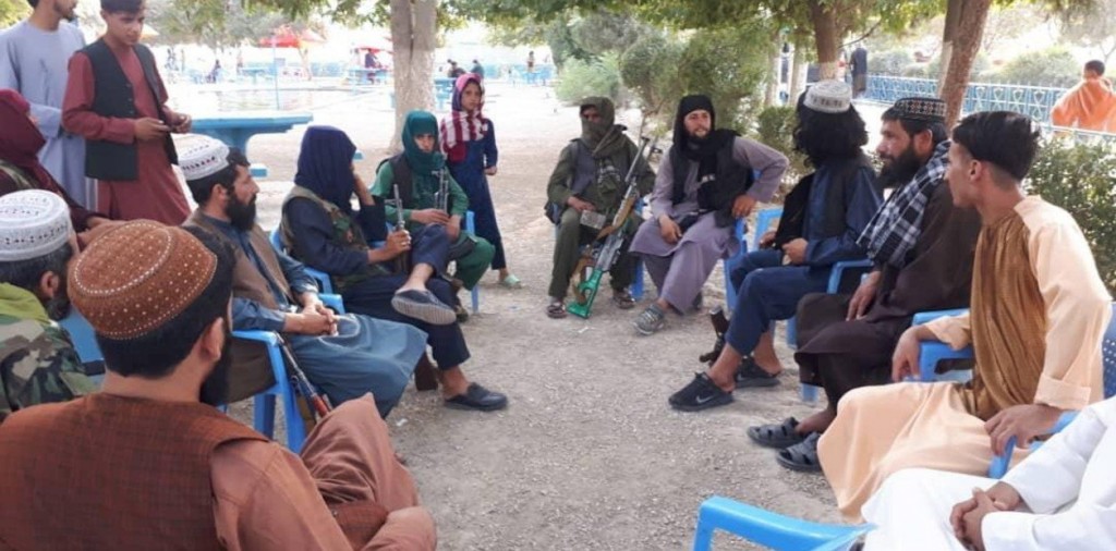 Los talibanes se reúnen para una reunión en un parque en Mazar-e-Sharif, Afganistán. Foto EFE.