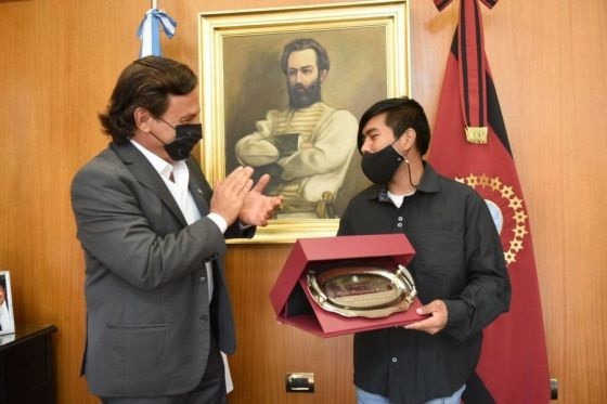 “Es un honor y orgullo para Salta”, expresó el mandatario al entregarle un reconocimiento por su esfuerzo y dedicación como estudiante y su nominación internacional.