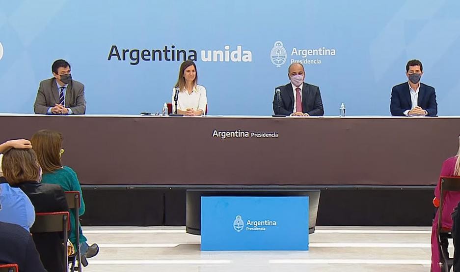 "Mandemos un aplauso al presidente Alberto Fernández, quien dio la instrucción para que esto se ponga en marcha, porque tiene claro hacia dónde vamos. En momentos muy difíciles, el Presidente mantuvo firme el timón del barco. Somos un equipo", dijo Manzur al anunciar la medida.