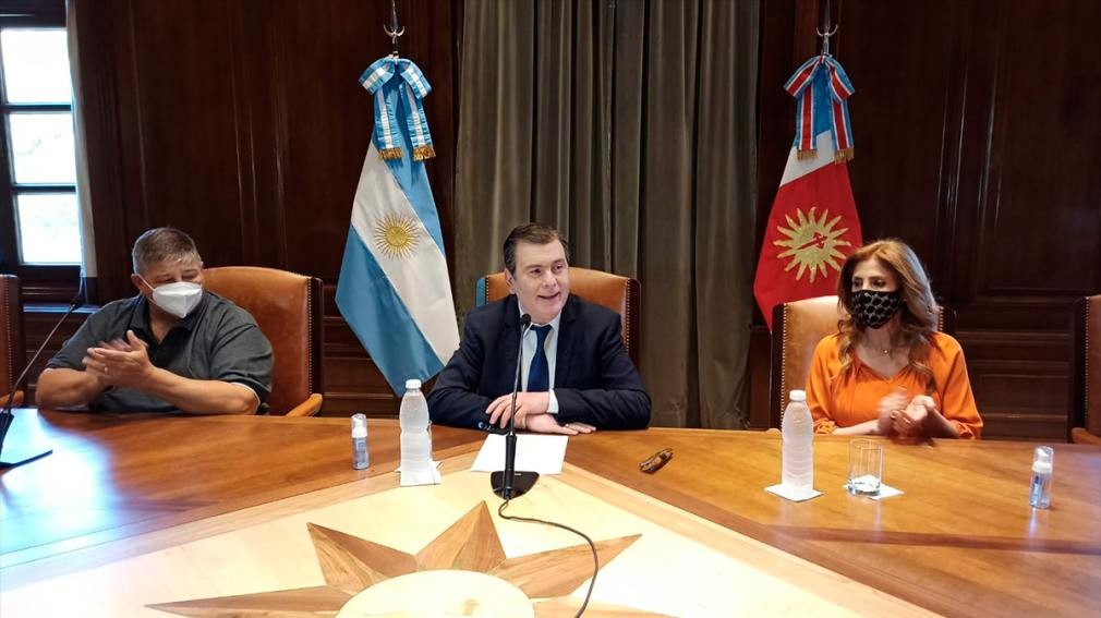 Junto al gobernador estuvo la senadora Claudia de Zamora y el secretario general de la CGT en la provincia, José Gómez. Además participaron del anuncio el jefe de Gabinete Elías Suárez y el senador Gerardo Montenegro.