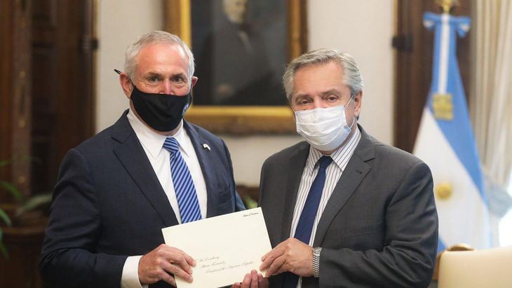 El Presidente recibió las cartas credenciales del representante de Joe Biden en la Argentina y luego mantuvo un encuentro con el diplomático.