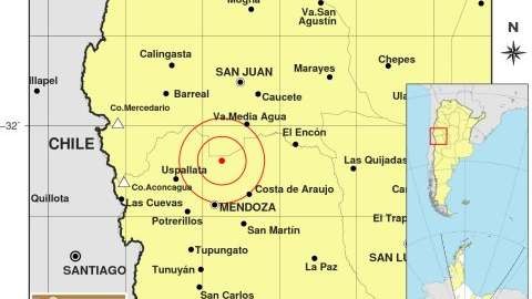 El epicentro del mismo fue la provincia de San Juan, a 73 km al Suroeste de San Juan; 99 km al Norte de Mendoza .