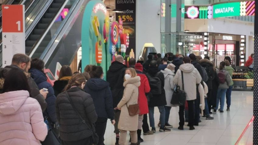 Ciudadanos rusos haciendo colas en todos los cajeros automáticos de Moscú.