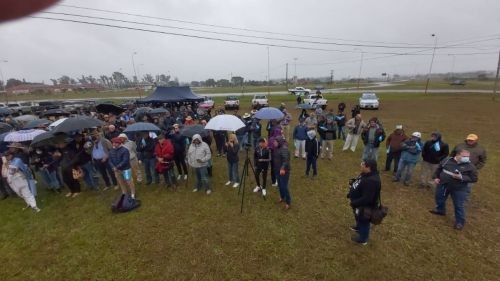Pese al frío y la llovizna, productores se manifestaron en la rotonda de ingreso a Rosario de la Frontera.