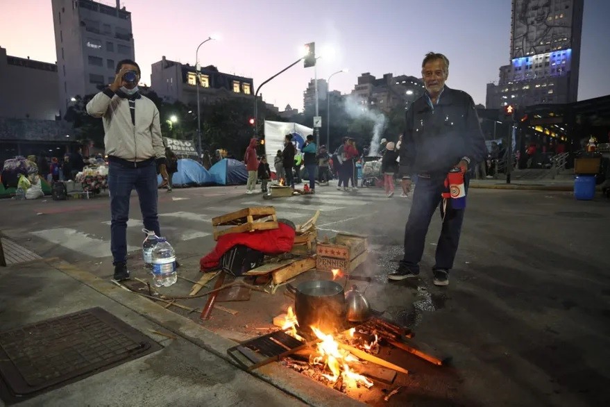 El acampe frente al Ministerio de Desarrollo Social continúa durante la noche